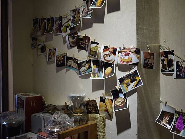 牆上掛著許多店裡點心的相片。