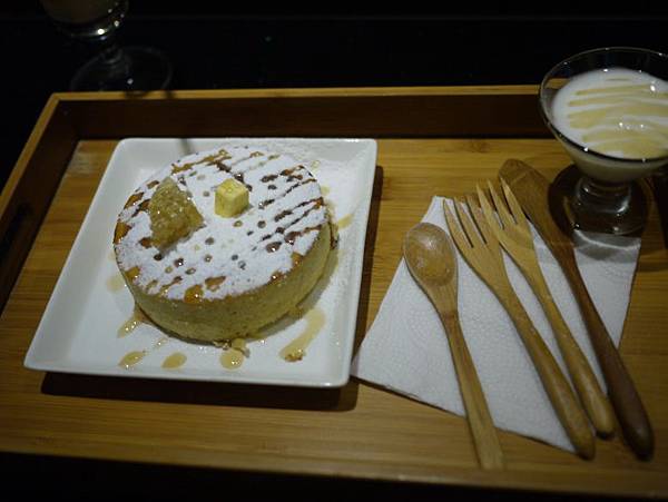 我們點的蜂蜜起司厚鬆餅($198),我在他們粉絲團看到有些厚鬆餅是2層的,這個只有一層,真的有點貴了。