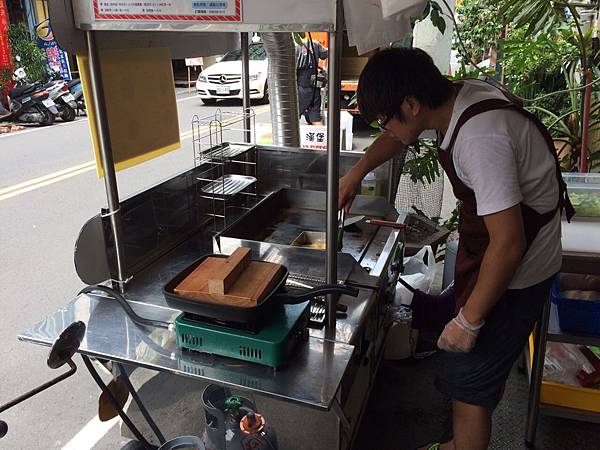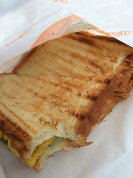 成品,吃起來滿多汁的不會乾澀,吐司是選用比較厚的吐司,經過壓烤仍然是軟綿的口感,我都跟老闆說烙痕壓深一點,個人覺得外層烤得有點酥酥的最好吃。