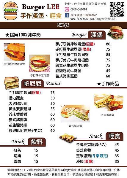 粉絲團:https://www.facebook.com/Burger0960lee/timeline