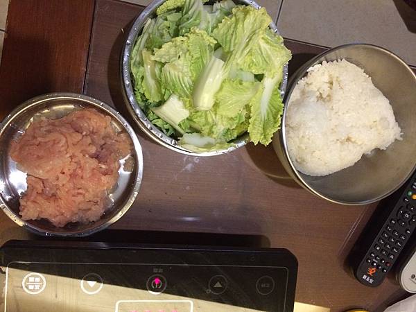 因此不得不在如此克難只有1個電磁爐的環境下,想出一些比較健康的料理,盡量達到低脂無油、營養均衡的目的,這是兩人份的。
