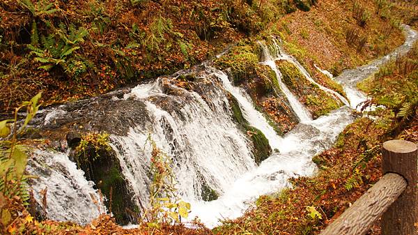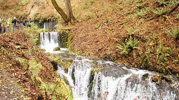 第一個景點是白絲瀑布(白糸の滝、白糸の瀧),停好車後走進去(停車免費),通往瀑布的道路前有一堆攤販,還有廁所可以使用。