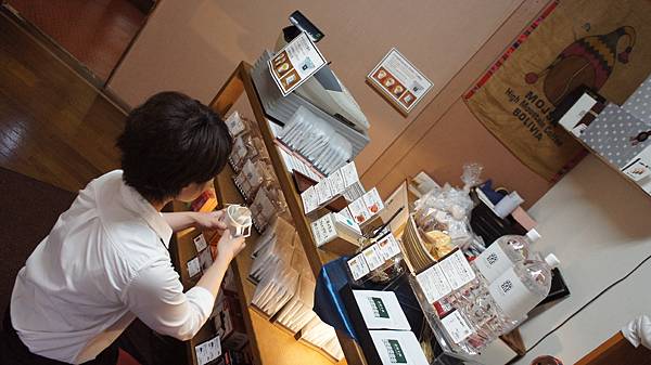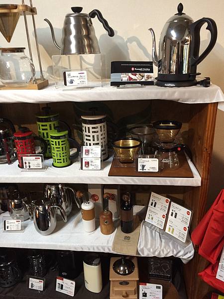 另外還有賣咖啡器具,中間那三個是他們家的手搖磨豆機,造型設計得超可愛,不過一個要價12000多日幣,我下不了手。