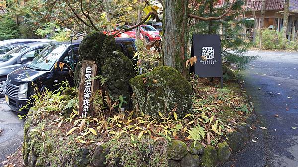 到了丸山咖啡本店,店被許多樹木包圍,不仔細看很容易錯過,店外就有停車場了,我們是中午12點多到,剛好只剩一個停車位。