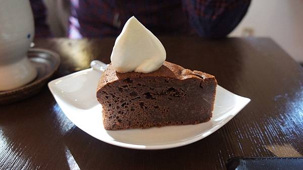 左衛門點的巧克力蛋糕,是屬於布朗尼蛋糕,口感較扎實,有點像在吃巧克力塊,還滿好吃的,味道很濃。