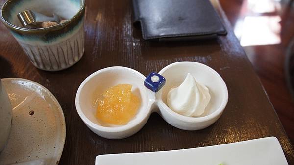 搭配的是蘋果醬跟鮮奶油,蘋果醬很好吃,不過配鮮奶油就不對了,scone應該要搭配黃色那種奶油塊才對啊!!!
